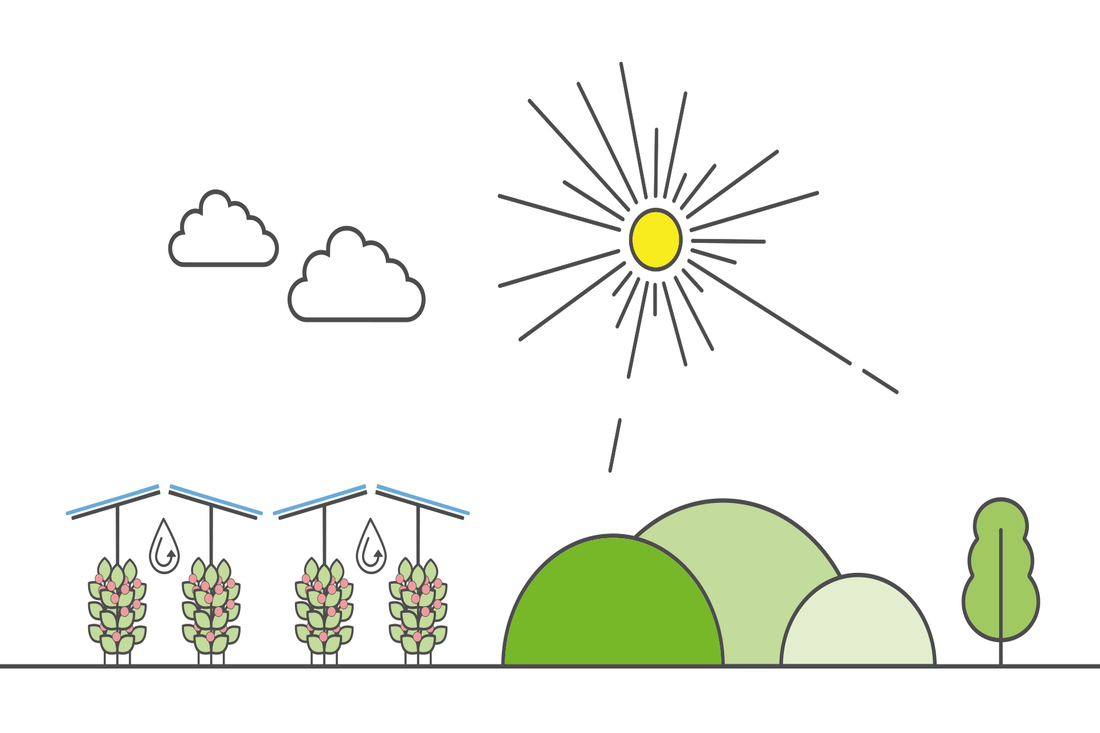 Our Agri-PV systems make the best possible use of the synergy between crop production and energy generation. Depending on the application you use, you can feel a range of techno-ecological benefits like protection of crops from hail and excess sunlight and from excess evaporation of water from the plants and soil, reduction of soil erosion due to wind, stabilization of crop production due to micro-climates.